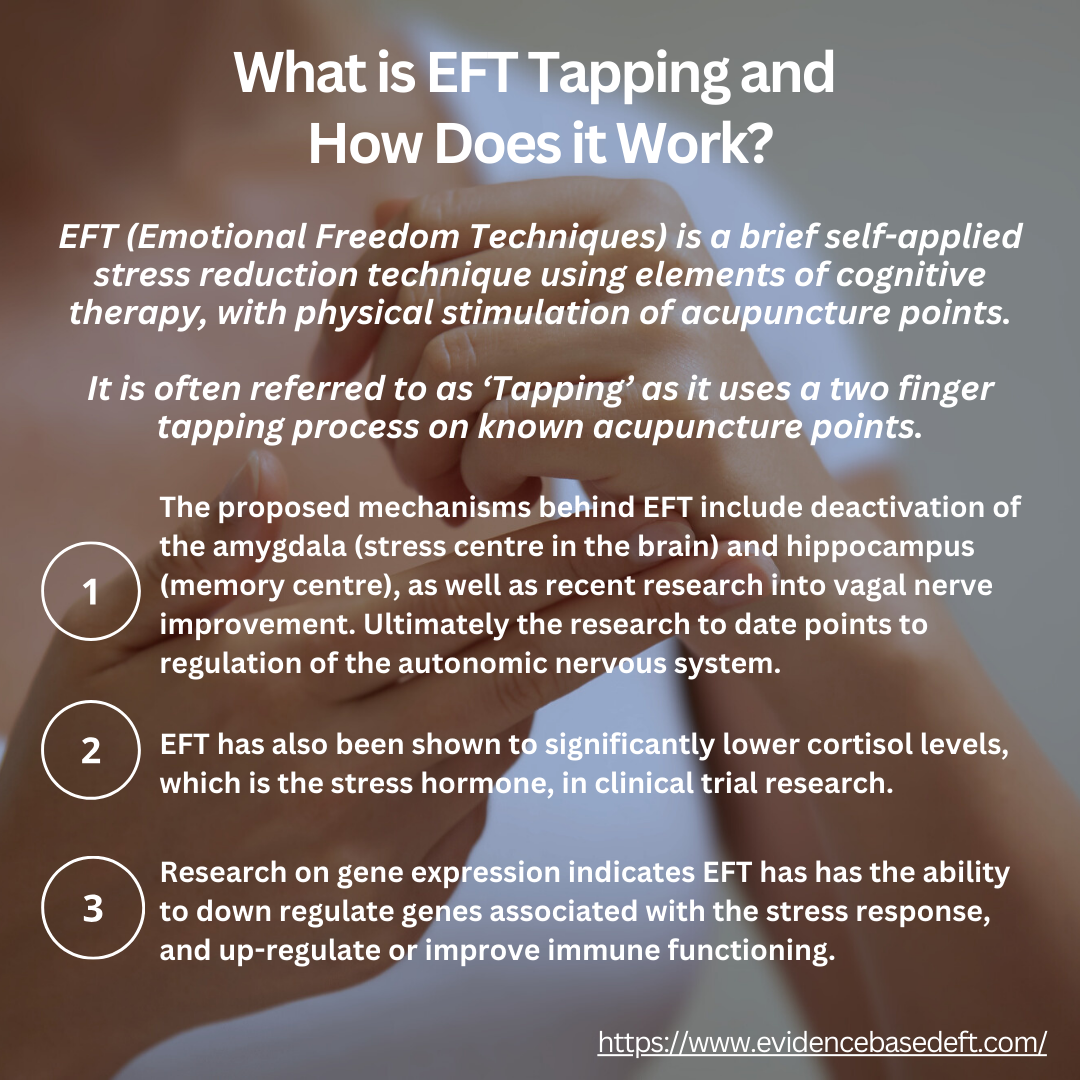 EFT (Emotional Freedom Techniques), often called tapping, is a gentle, evidence-informed practice that combines focused attention with light tapping on specific acupressure points on the body to help regulate stress responses and soften emotional charge. It’s practical, accessible, and supports change without needing to relive the past.